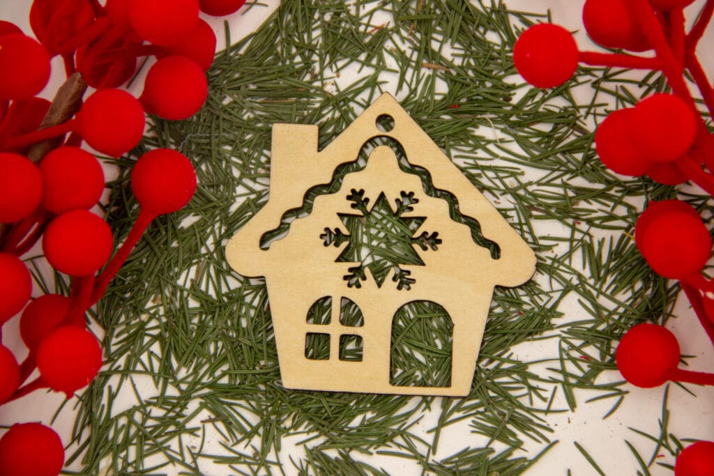 Prisrčen leseni božični okrasek v obliki hiške s snežinko, ki v vaš dom vnese toplino, domačnost in praznični čar. Odličen je za okrasitev smrečice, venčkov ali kot drobna pozornost za vaše najdražje.