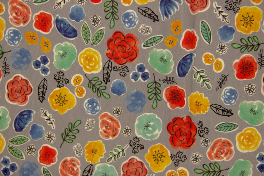 cvetlični vzorec - pisane cvetke na sivi