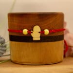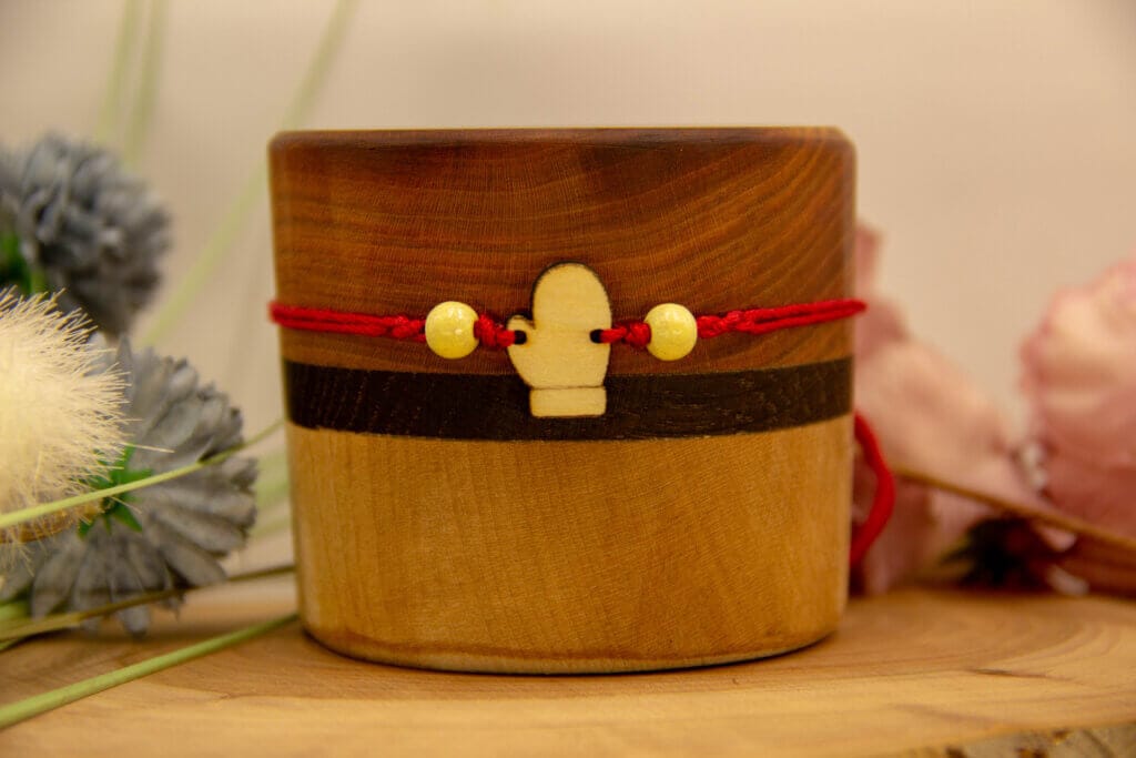 Unikatne zapestnice iz naravnega lipovega lesa, ki združujejo toplino narave in preprost, minimalističen slog. Leseni motiv velikosti 1,5 cm je dopolnjen z različnimi barvami vrvic in kroglic – vsaka zapestnica je zato posebna in drugačna, kot je vidno na slikah.